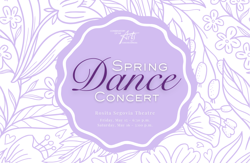 The annual Conservatory Spring Dance Concert will will take place on: Friday, May 15th at 6:30…